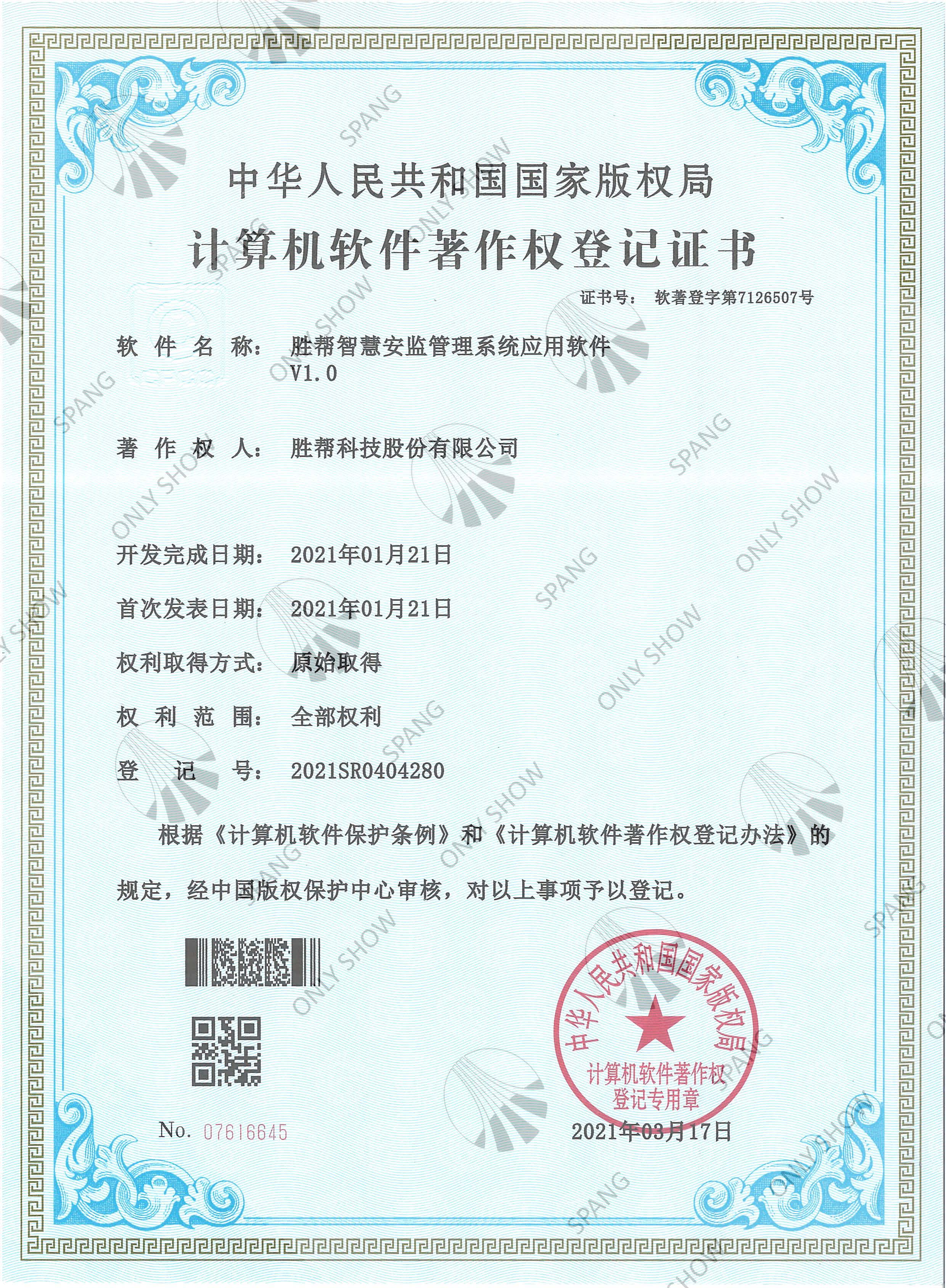 智慧安监管理系统应用软件产品证书